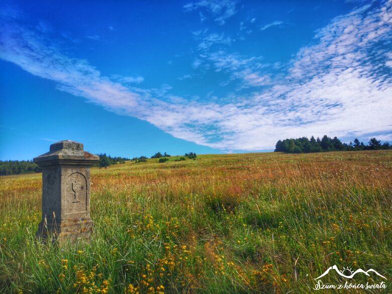 Na Kamieniu robimy sobie przerwę na obiad i ruszamy dalej, do kolejnej wysiedlonej i już nieistniejącej wsi, Czeremchy. A tam co? Pierwsza polska chatka na naszym szlaku! A w środku oczywiście dramatyczny apel do „flei i flejtucha” – ludzie notorycznie zostawiają tu po sobie syf… Cała okolica jest naprawdę ciekawa, z umieszczonych po drodze znaków możemy się na przykład dowiedzieć, że do ulicy Starowiślnej w Krakowie mamy stąd jedynie 64 godziny marszu! 🙂 W Czeremsze znajdują się również pozostałości po okopach konfederatów barskich. Jeśli czytałeś/czytałaś naszą wcześniejszą relację z Bieszczadów, powinno Ci to brzmieć znajomo… 🙂