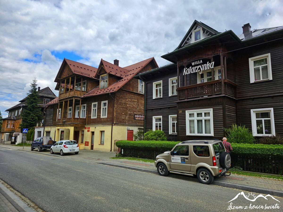 Marzy nam się ciastko w jednej z rabczańskich kawiarni, niestety o tej godzinie (i porze roku) wszystkie interesujące nas lokale są zamknięte. Lądujemy więc pod Żabką, by po uzupełnieniu kalorii ruszyć w dalszą drogę. Maszerujemy ulicay Poniatowskiego, przy której usytuowanych jest sporo klimatycznych drewnianych willi. W końcu Rabka to jedno z najbardziej znanych beskidzkich uzdrowisk! Choć akurat Kylo ma dosyć traumatyczne wspomnienia z pobytu w rabczańskim sanatorium za małolata – ale to już zupełnie inna opowieść…