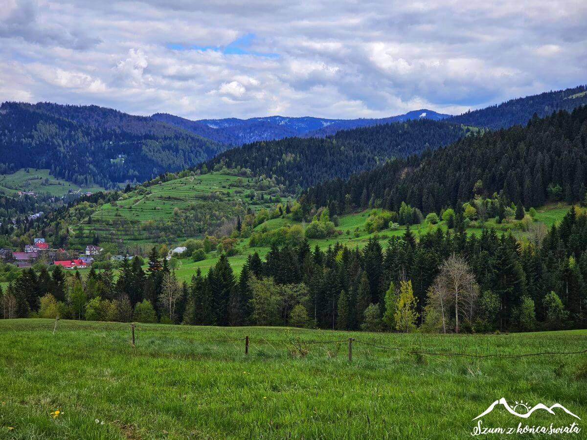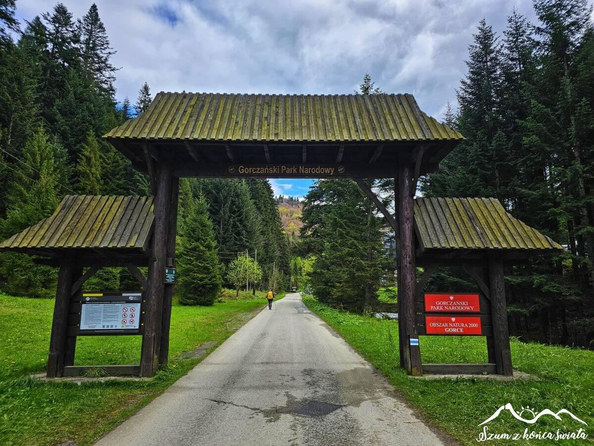 Wychodząc z karczmy, znajdujemy się już w Koninkach. Koninki znane są przede wszystkim ze stoku i ośrodka narciarskiego, pamiętającego czasy minione. Gorąco polecamy przejażdżkę znajdującym się tutaj wyciągiem krzesełkowym Tobołów – przeżycia gwarantowane! To właśnie tutaj wchodzimy do Gorczańskiego Parku Narodowego – nie ma jednak zasięgu, więc zakup biletu wstępu można albo ogarnąć wcześniej, albo później (jeśli kasa jest akurat zamknięta).